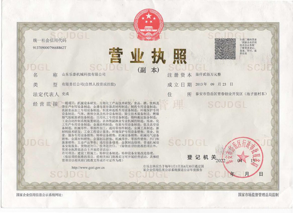 山東樂泰機(jī)械科技有限公司始建于2013年,是一家股份制高新技術(shù)企業(yè),擁有140多名各類中高級技術(shù)和技能人才,購置了大型激光切割機(jī)等先進(jìn)生產(chǎn)設(shè)備和粗糙度檢測儀等精密檢測設(shè)備。公司具有D級壓力容器的設(shè)計(jì)及制造資質(zhì),通過了ISO9001質(zhì)量管理體系認(rèn)證和3C認(rèn)證。 公司專注于中厚板及薄壁不銹鋼非標(biāo)儲罐、發(fā)酵罐、種子罐、臥式結(jié)晶機(jī)、立式結(jié)晶罐、提取罐、雙層酒精罐、沉降罐、流化床等干燥系統(tǒng)設(shè)備的設(shè)計(jì)及制造。我們致力于為淀粉糖、生物發(fā)酵、制藥、釀酒、調(diào)味品、飲料、果蔬汁、乳制品、大豆分離蛋白、酶制劑、樹脂吸附等領(lǐng)域提供不銹鋼成套裝備。多年來,我們已經(jīng)為全國百家客戶提供了服務(wù),并成功出口產(chǎn)品到法國、智利、美國、土耳其和越南等國家。